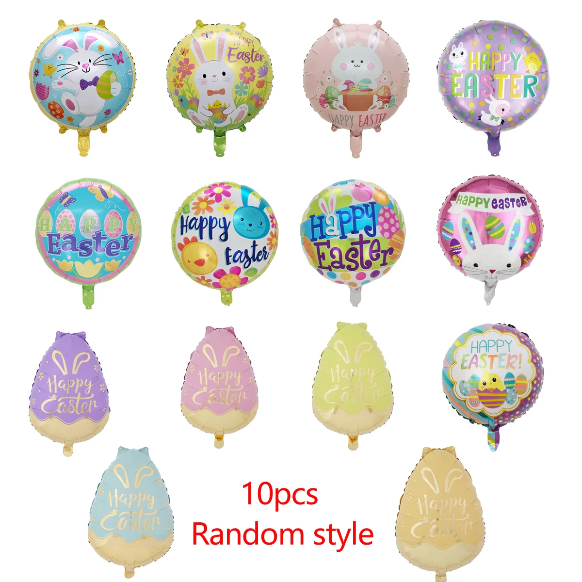 Apresentando um divertido tema de Páscoa com desenhos de letras, ovos e coelhos, esses balões são ideais para decorações de Páscoa.