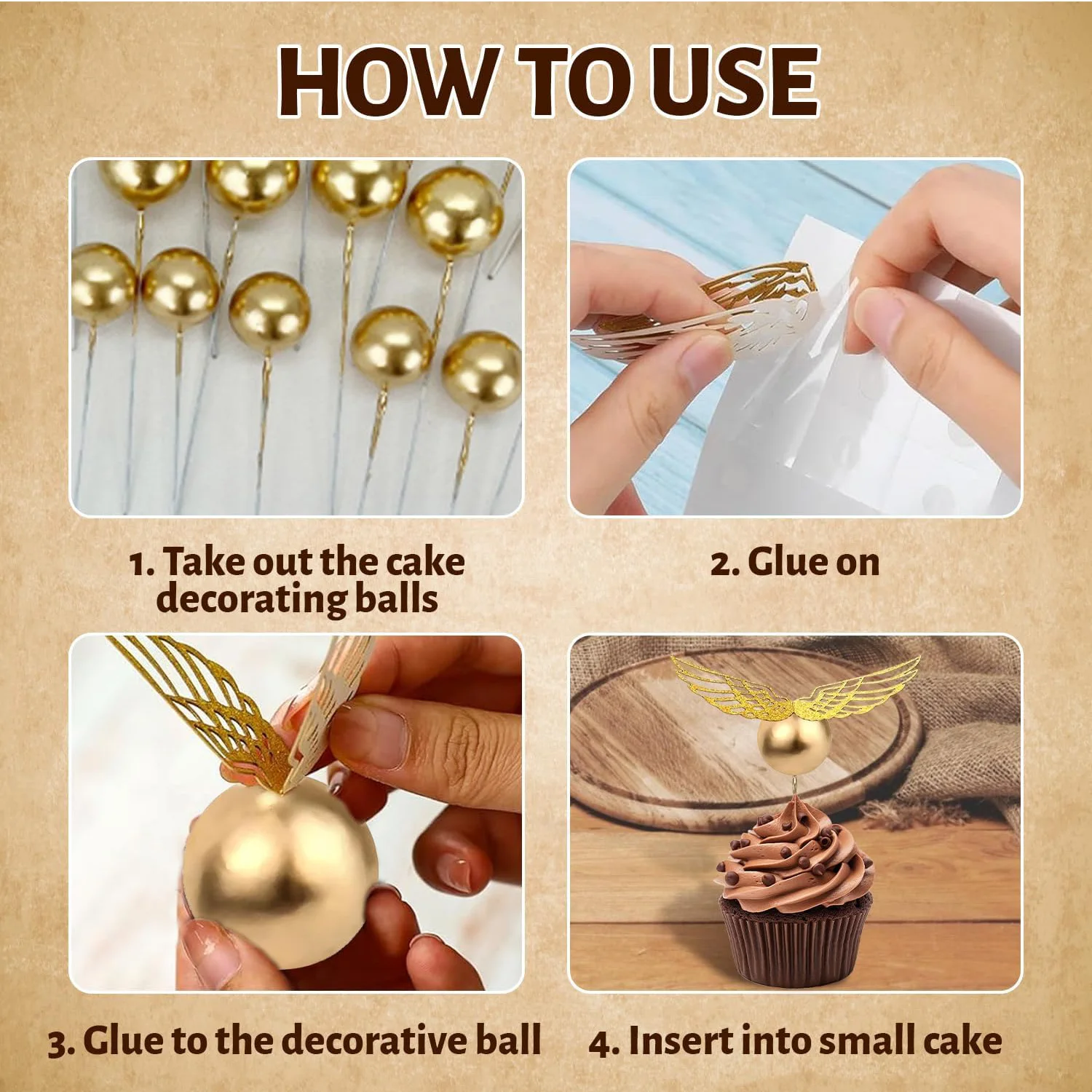 • 【Fácil de usar】Esses toppers de bolo mágico são fáceis de montar, as asas douradas vêm com pontos de cola, basta remover os pontos de cola dupla-face e colá-los em uma asa de sopro, depois colá-los nas decorações de bola dourada, todos podem ser montado em apenas alguns minutos e sem cair.