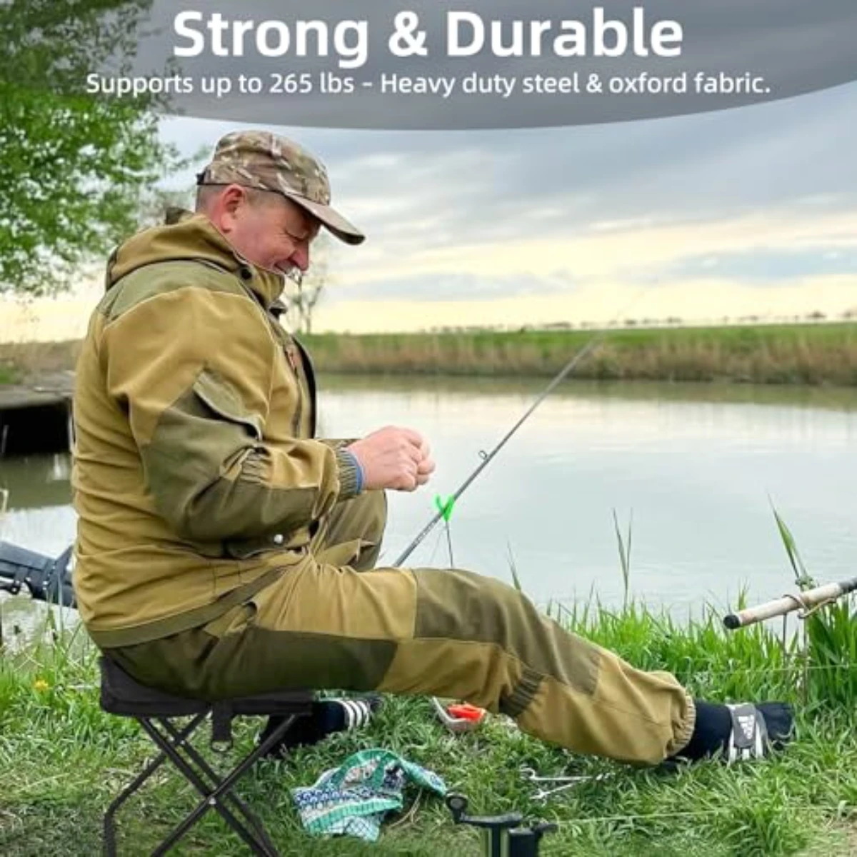 O design dobrável permite configuração e armazenamento rápidos, tornando-o um companheiro ideal para atividades ao ar livre, como camping e pesca.